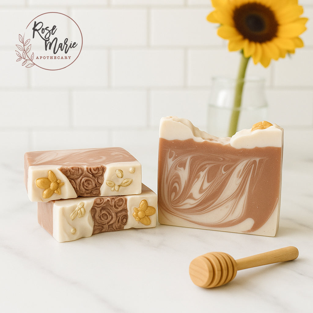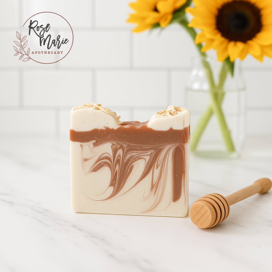 Ingredients: Coconut Oil, RSPO Palm Oil, Distilled Water, Canola Oil, Olive Oil, Sodium Hydroxide, Fragrance, Castor Oil, Melt and Pour Base (Coconut Oil, Palm Oil, Safflower Oil, Glycerin, Water, Sodium Hydroxide, Sorbitol, Propylene Glycol, Sorbitan Oleate, Oat Protein), Sweet Almond Oil, Titanium Dioxide, Vitamin E, Sodium Lactate, Colloidal Oats, Whole Grain Rolled Oats, Mica